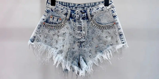 Hot sexy Summer Diamond Studded Straight Jeans Shorts